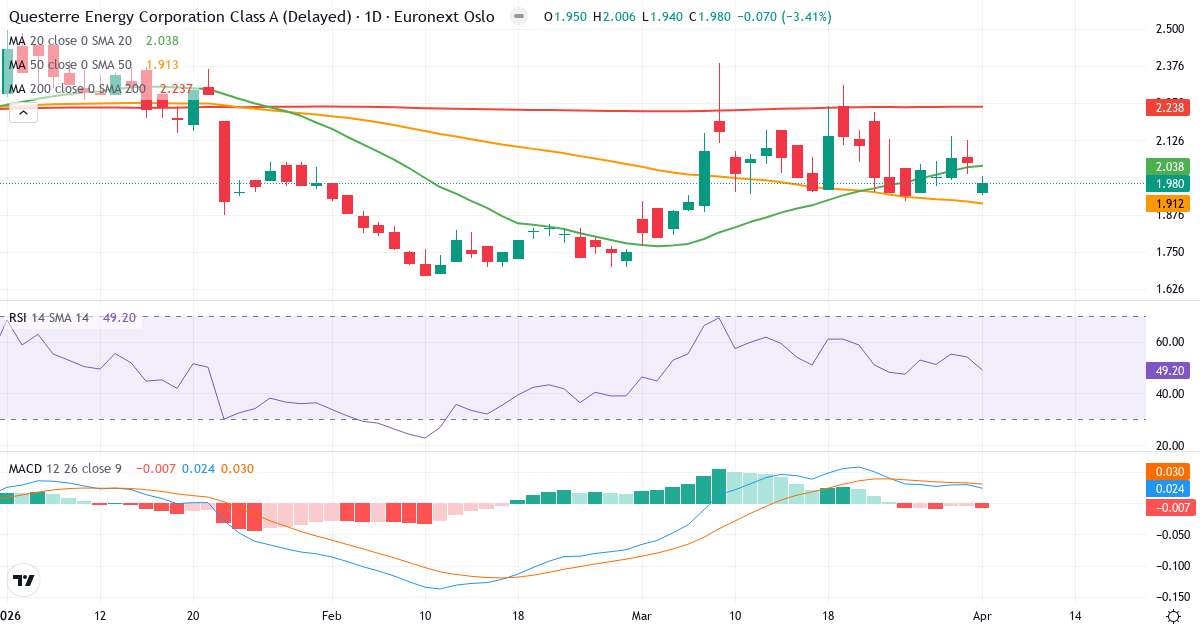 Der nächste Bericht von Questerre Energy wird am 12. Mai 2026 veröffentlicht. Dieser Bericht deckt das erste Quartal (Q1) ab und endete am 31. März 2026.Technische Analyse von Questerre Energy 2026 – Signal: Abwarten