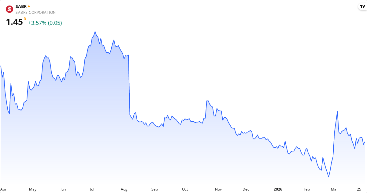 Sabre veröffentlicht den nächsten Bericht am 05. Mai 2026. Die Aktie wird derzeit zu 1.44 $ gehandelt.