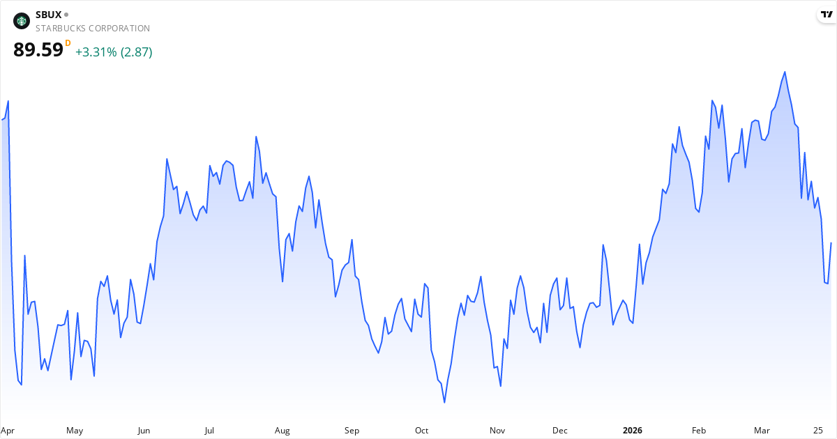 Die Zukunftsaussichten für Starbucks basierend auf aktuellen Daten: das durchschnittliche Kursziel der Analysten ist 99.94 $ (+10.2%); der nächste Bericht wird am 05/05-2026 veröffentlicht, was den Kurs beeinflussen kann; das KGV ist 72.3 (hoch – der Markt erwartet Wachstum). Beachten Sie, dass Aktienkurse von vielen Faktoren beeinflusst werden, einschließlich Berichten, Makroökonomie und Marktstimmung. Historische Renditen sind keine Garantie für zukünftige Renditen.