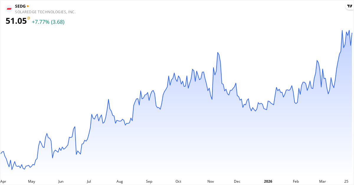 SolarEdge Technologies veröffentlicht den nächsten Bericht am 04. Mai 2026. Die Aktie wird derzeit zu 51.52 $ gehandelt.