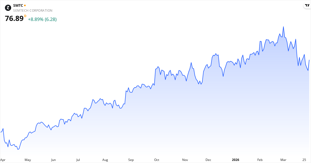 Semtech ist derzeit unterbewertet mit einer Abweichung von 28% im Verhältnis zum Kursziel.