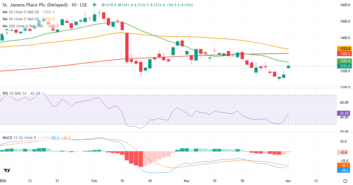 Der nächste Bericht von St. James Place wird am 29. Juli 2026 veröffentlicht. Dieser Bericht deckt das zweite Quartal (Q2) ab und endete am 30. Juni 2026.Technische Analyse von St. James Place 2026 – Signal: Verkauf
