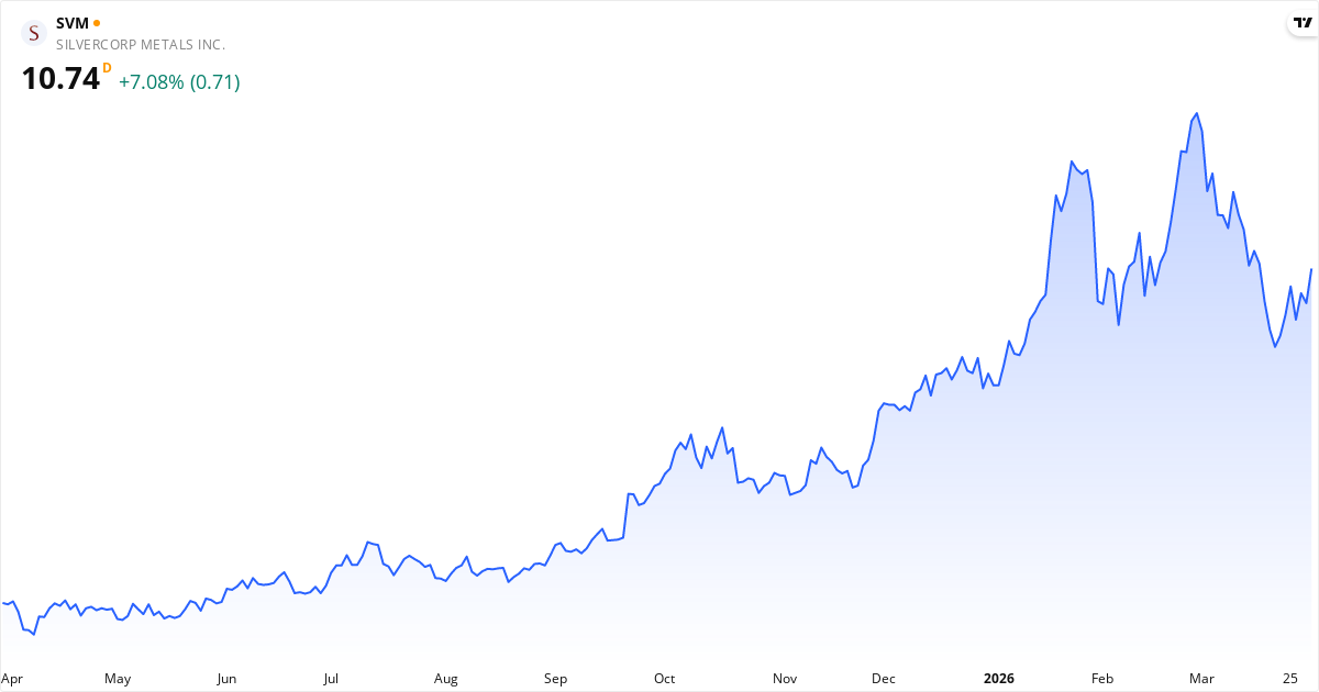 Alle Aktien erkunden →Über Silvercorp Metals – Sølv