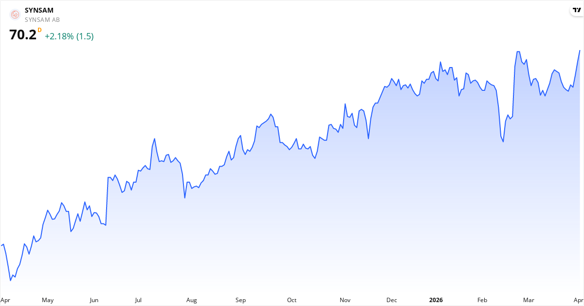 Golden Cross: Der 50-Tage-Durchschnitt (65.73) liegt über dem 200-Tage-Durchschnitt (61.13), was ein klassisches bullisches Signal für Synsam AB ist.