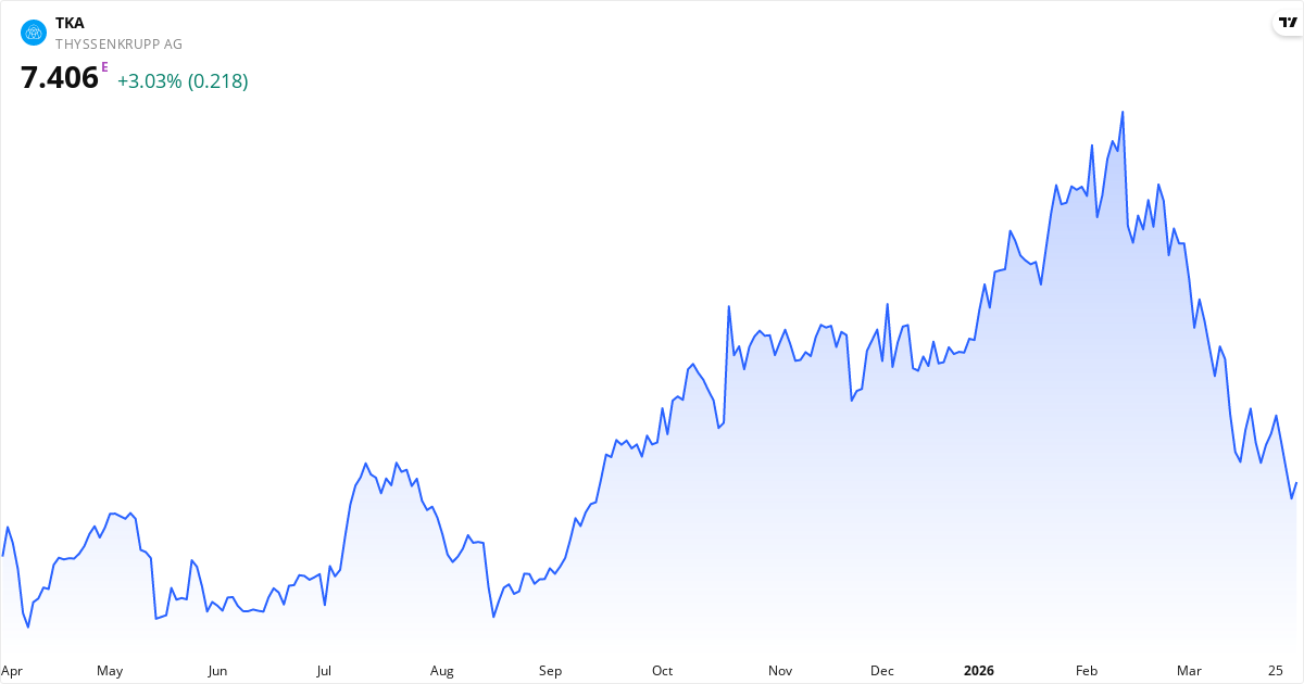 Der nächste Bericht von Thyssenkrupp wird am 12. Mai 2026 veröffentlicht. Dieser Bericht deckt das erste Quartal (Q1) ab und endete am 31. März 2026.Technische Analyse von Thyssenkrupp 2026 – Signal: Verkauf