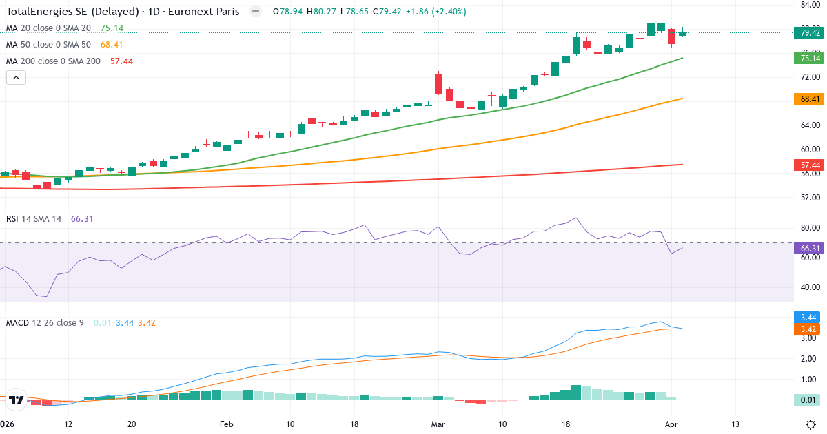 Der nächste Bericht von TotalEnergies wird am 29. April 2026 veröffentlicht. Dieser Bericht deckt das erste Quartal (Q1) ab und endete am 31. März 2026.Technische Analyse von TotalEnergies 2026 – Signal: Starker Kauf
