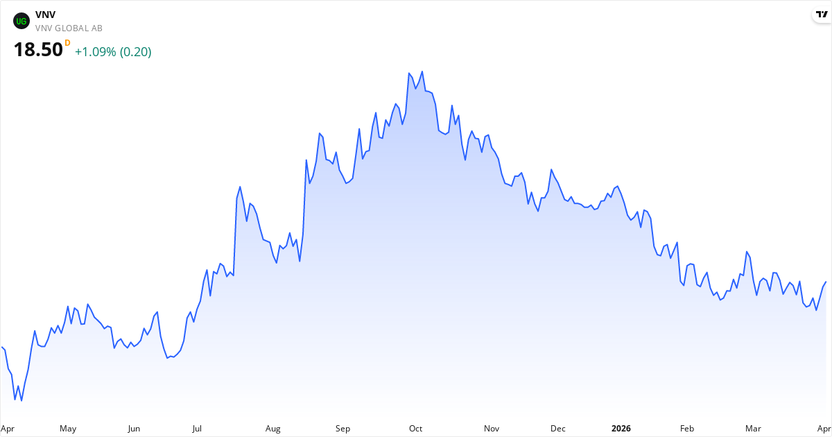 VNV Global AB (publ) hat eine jährliche Standardabweichung von 41.1%, was die Aktie als mittleres Risiko klassifiziert. Der Kurs kann bei Marktveränderungen merklich schwanken.