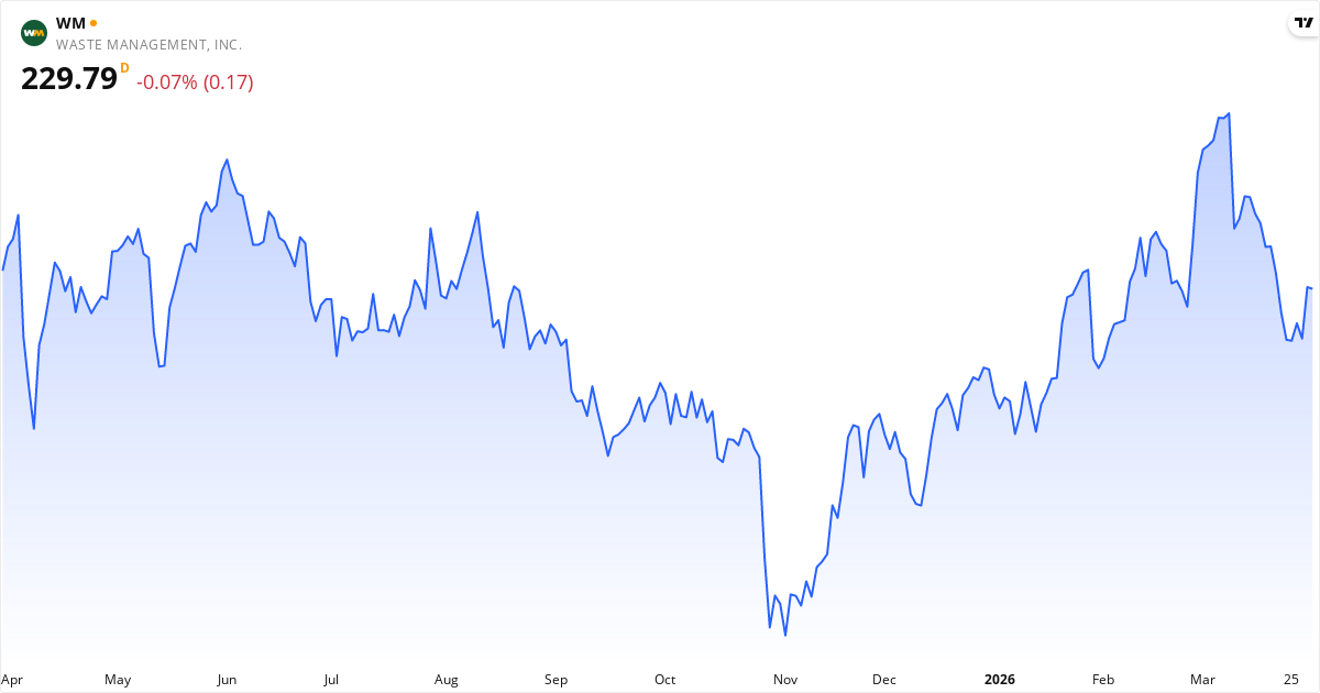 Waste Management veröffentlicht den nächsten Bericht am 28. April 2026. Die Aktie wird derzeit zu 230.33 $ gehandelt. Mit einem KGV von 34.4 wird der Markt genau beobachten, ob die Gewinne die Erwartungen erfüllen.