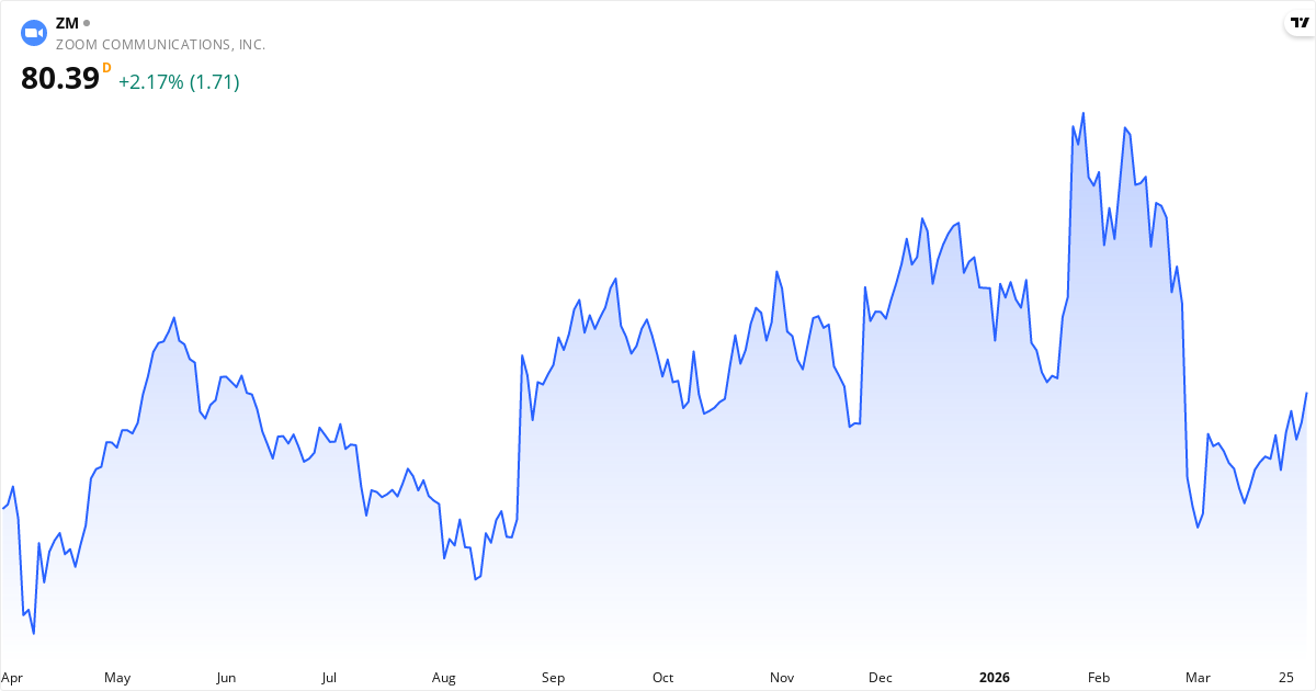 Zoom Video Communications veröffentlicht den nächsten Bericht am 20. Mai 2026. Die Aktie wird derzeit zu 80.52 $ gehandelt. Mit einem KGV von 12.7 wird der Markt genau beobachten, ob die Gewinne die Erwartungen erfüllen.