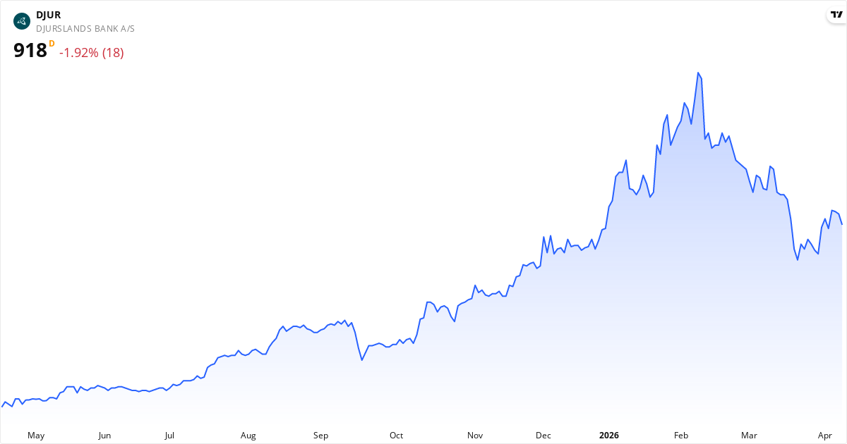 Djurslands Bank aktiekurs – Kursudvikling 2026. Opdateret 14. Apr 2026.