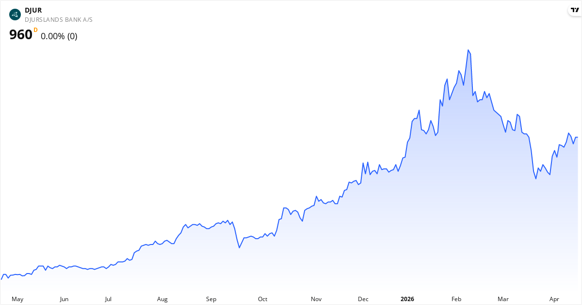Djurslands Bank offentliggør næste regnskab den 12. maj 2026. Aktien handles i øjeblikket til 966.00 Kr.. Med et P/E-tal på 10.4 vil markedet holde øje med om indtjeningen lever op til forventningerne.