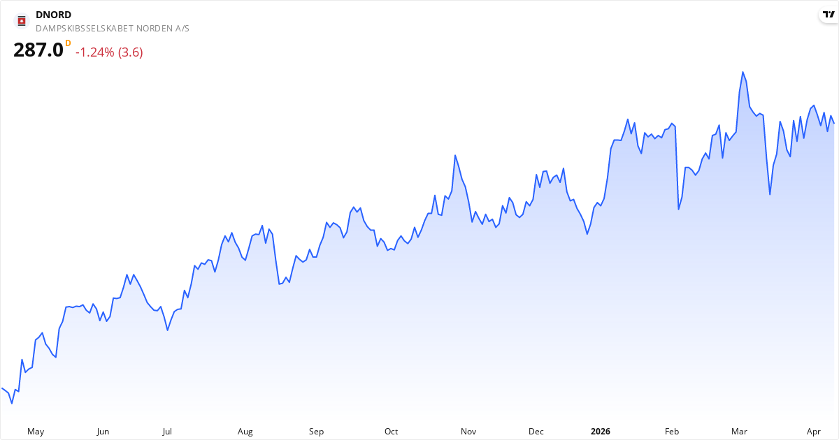 D/S Norden aktiekurs – Kursudvikling 2026. Opdateret 14. Apr 2026.