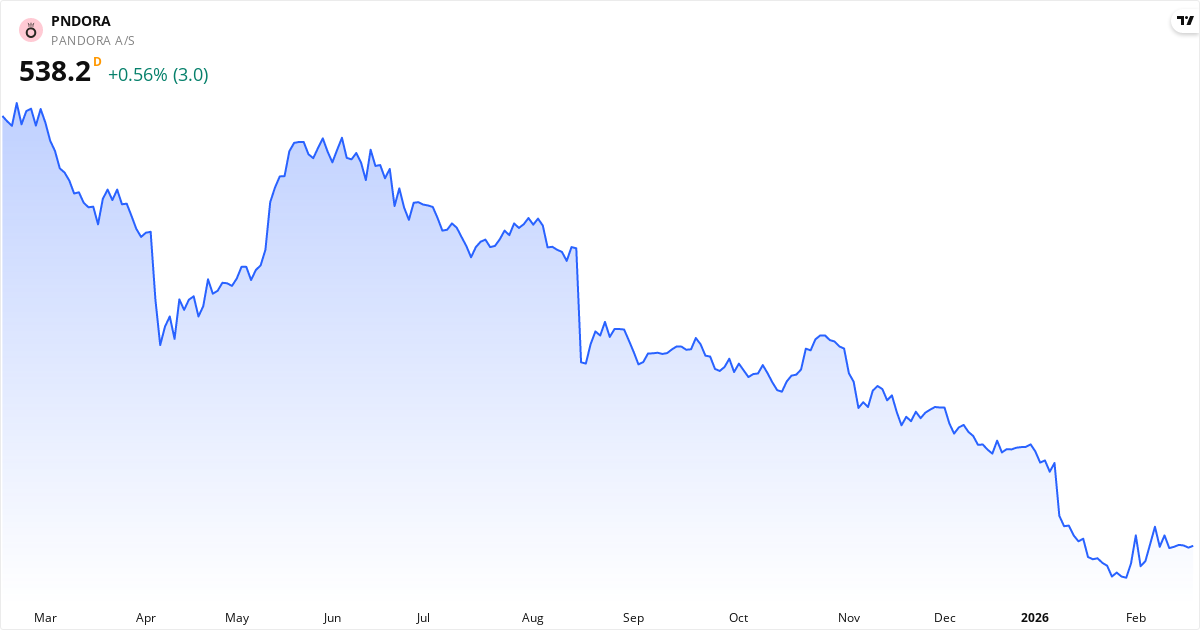 Nyheden: Bestyrelsesmedlem Marianne Kirkegaard har købt 1.000 aktier til kurs 541,5 for samlet 541.500 kr. Handlen blev gennemført i markedet på Nasdaq Copenhagen den 9 februar 2026. Hun ejer herefter 3.968 aktier. Størrelsen og det åbne markeds køb fra ledelsen signalerer tillid til Pandora. (dato: 2026-02-12 11:42)