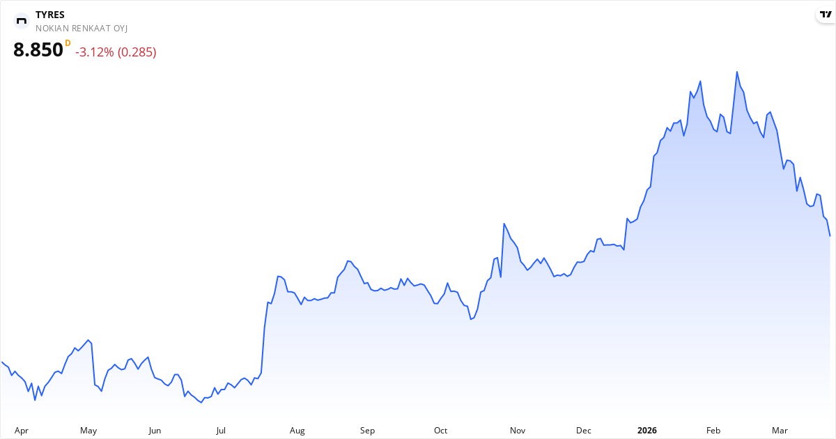 Nokian Renkaat (TYRES.HE) kursmål 2026: 11% upside + 2.7% udbytte