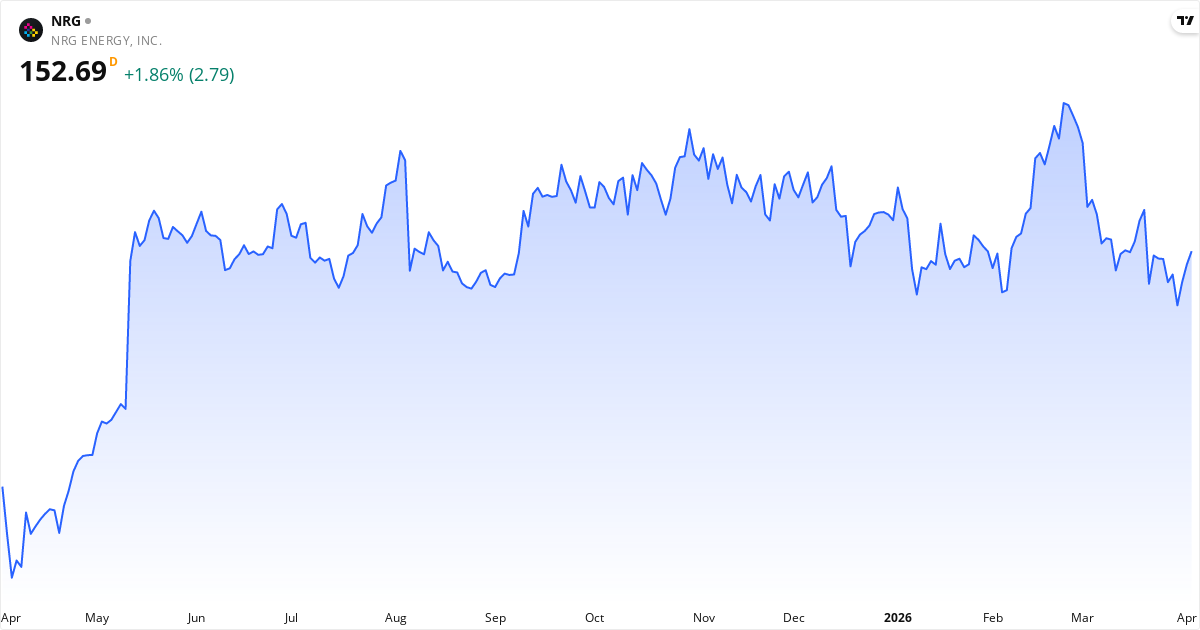 NRG Energy aksjekurs – Kursutvikling 2026. Oppdatert 04. Apr 2026.