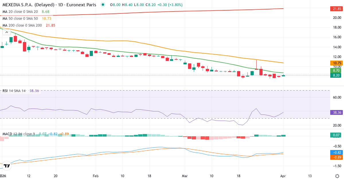 Trend: Negativ. Kursen handles under SMA50 og SMA200.