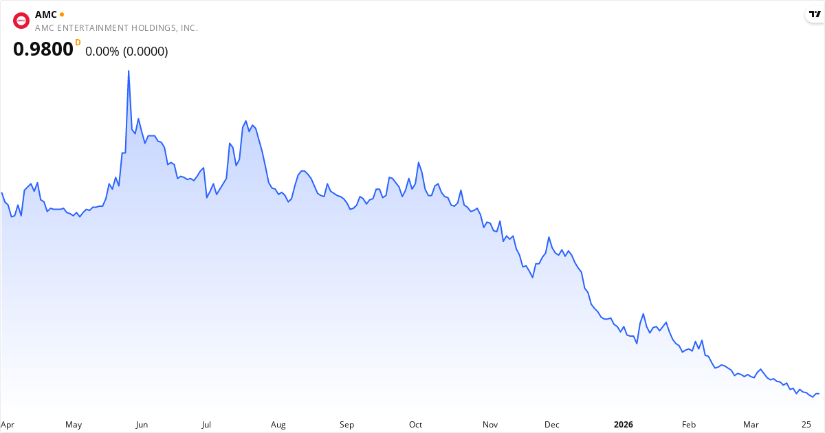 AMC Entertainment aksjekurs – Kursutvikling 2026. Oppdatert 01. Apr 2026.