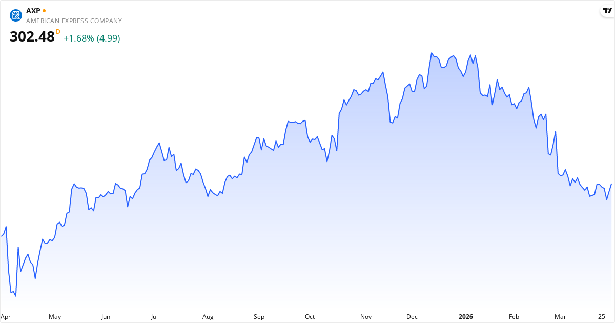 American Express publiserer neste rapport den 23. april 2026. Aksjen handles for tiden til 303.88 $. Med en P/E-verdi på 19.3 vil markedet følge med på om inntjeningen lever opp til forventningene.