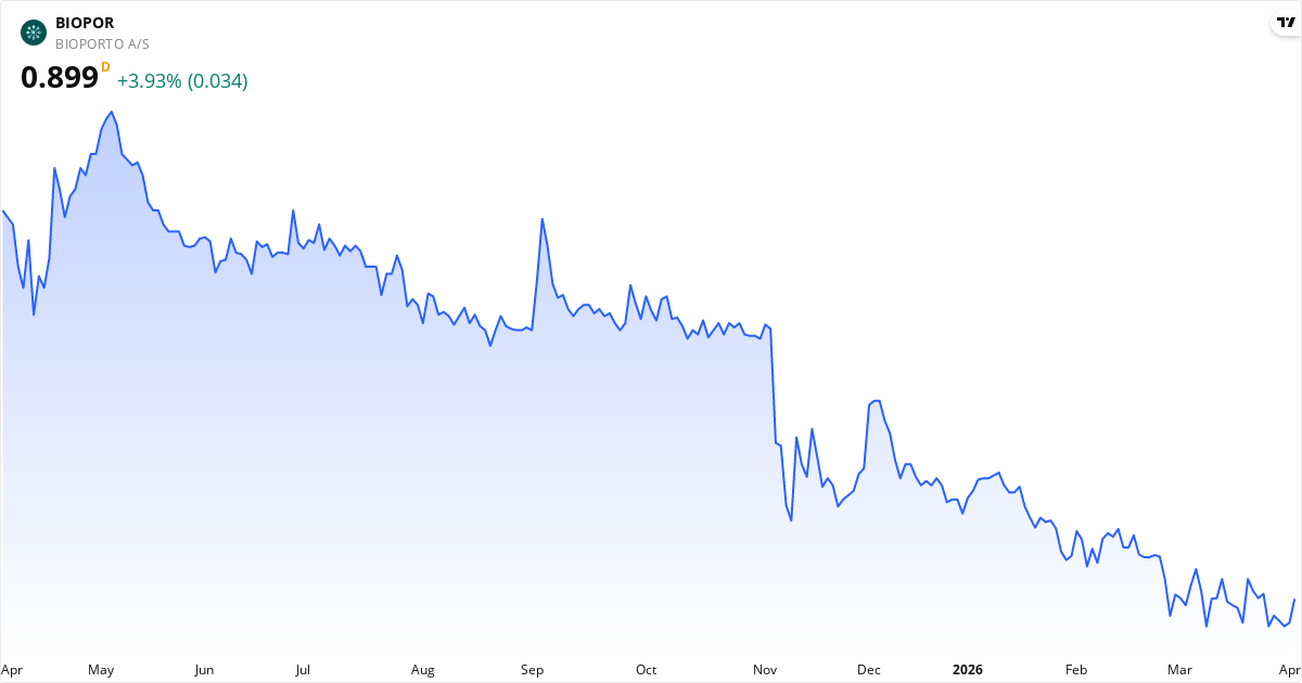 BioPorto publiserer neste rapport den 06. mai 2026. Aksjen handles for tiden til 0.89 Kr..