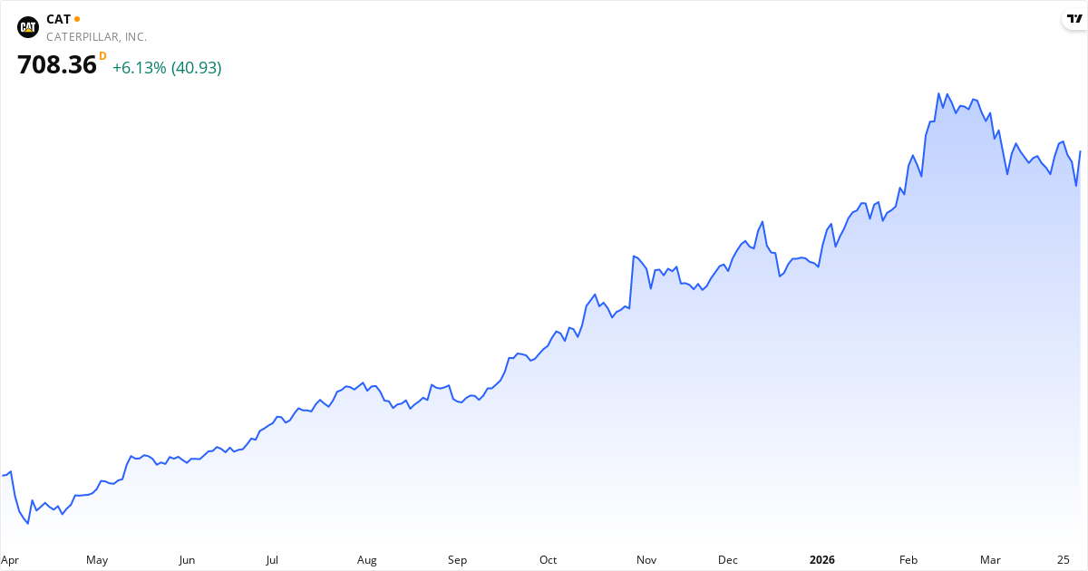 Fremtidsutsiktene for Caterpillar basert på aktuelle data: analytikernes gjennomsnittlige kursmål er 736.21 $ (+0.2%); aksjen er i en opptrend (over SMA50 og SMA200); neste rapport publiseres den 30/04-2026, noe som kan påvirke kursen; P/E-tallet er 35.5 (høyt – markedet forventer vekst). Observer at aksjekurser påvirkes av mange faktorer, inkludert rapporter, makroøkonomi og markedssentiment. Historisk avkastning er ingen garanti for fremtidig avkastning.