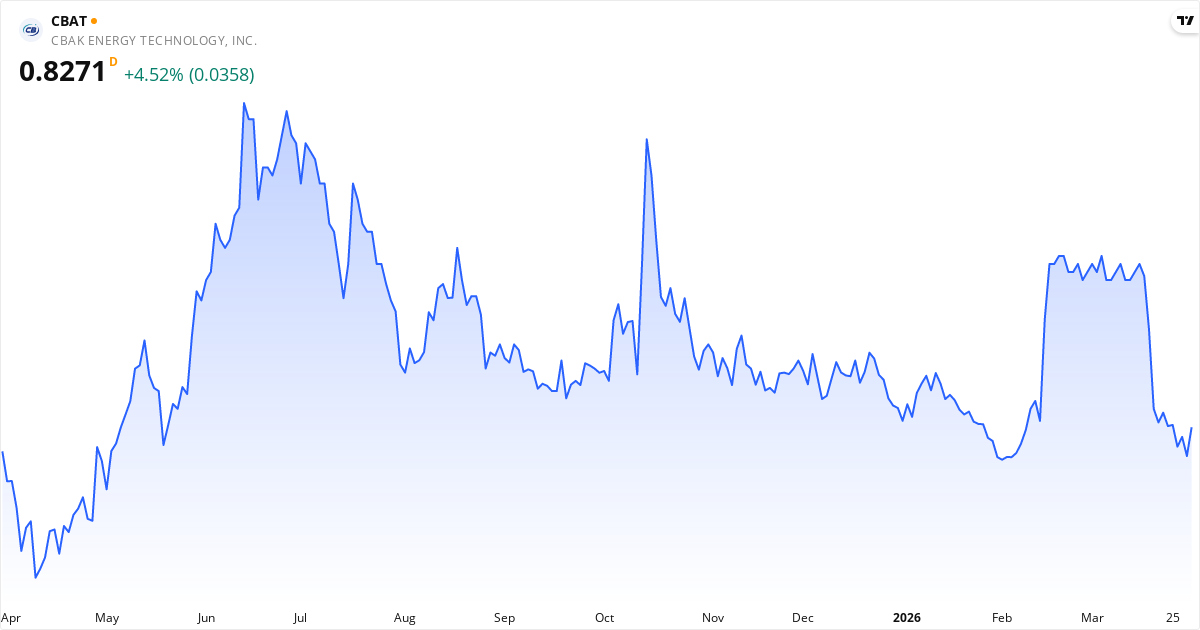 CBAK Energy Technology publiserer neste rapport den 15. april 2026. Aksjen handles for tiden til 0.84 $.