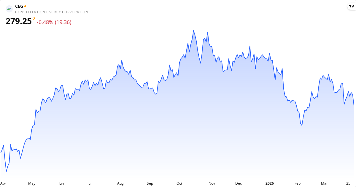 Constellation Energy aksjekurs – Kursutvikling 2026. Oppdatert 01. Apr 2026.