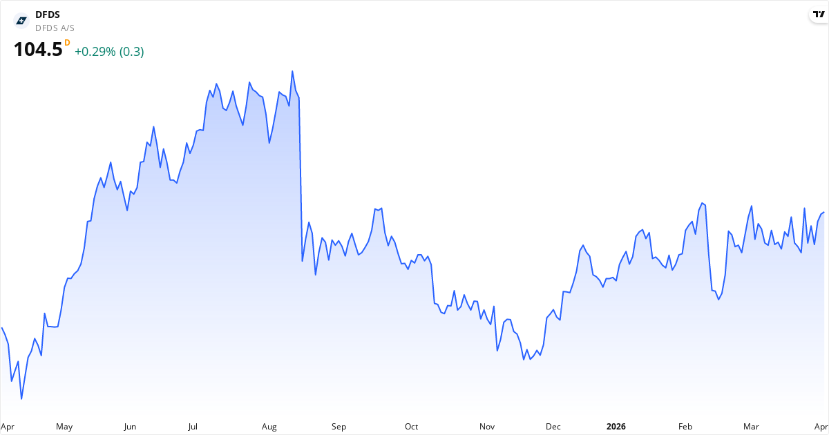 DFDS publiserer neste rapport den 04. mai 2026. Aksjen handles for tiden til 105.50 Kr..
