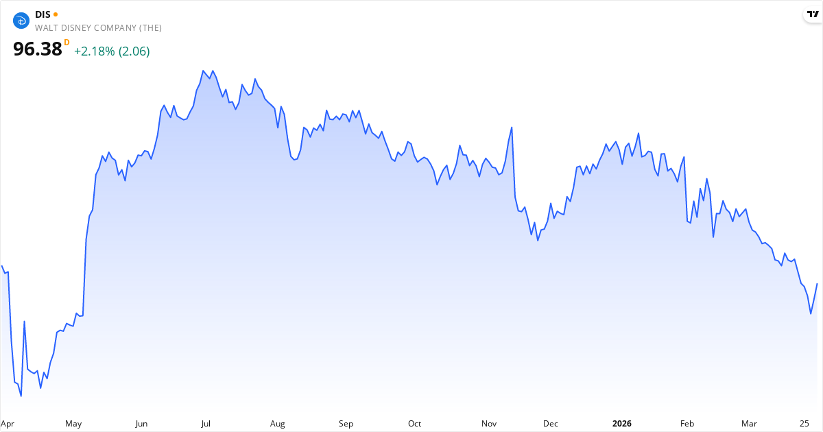 The Walt Disney aksjekurs – Kursutvikling 2026. Oppdatert 01. Apr 2026.