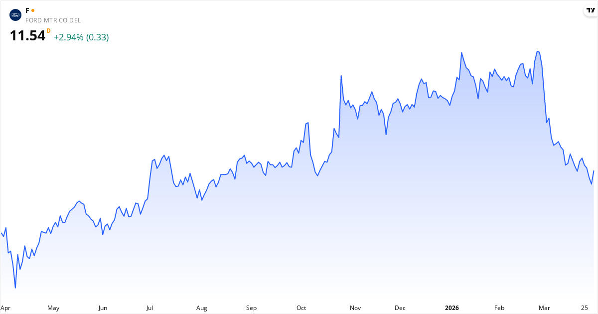 Ford Motor aksjekurs – Kursutvikling 2026. Oppdatert 01. Apr 2026.