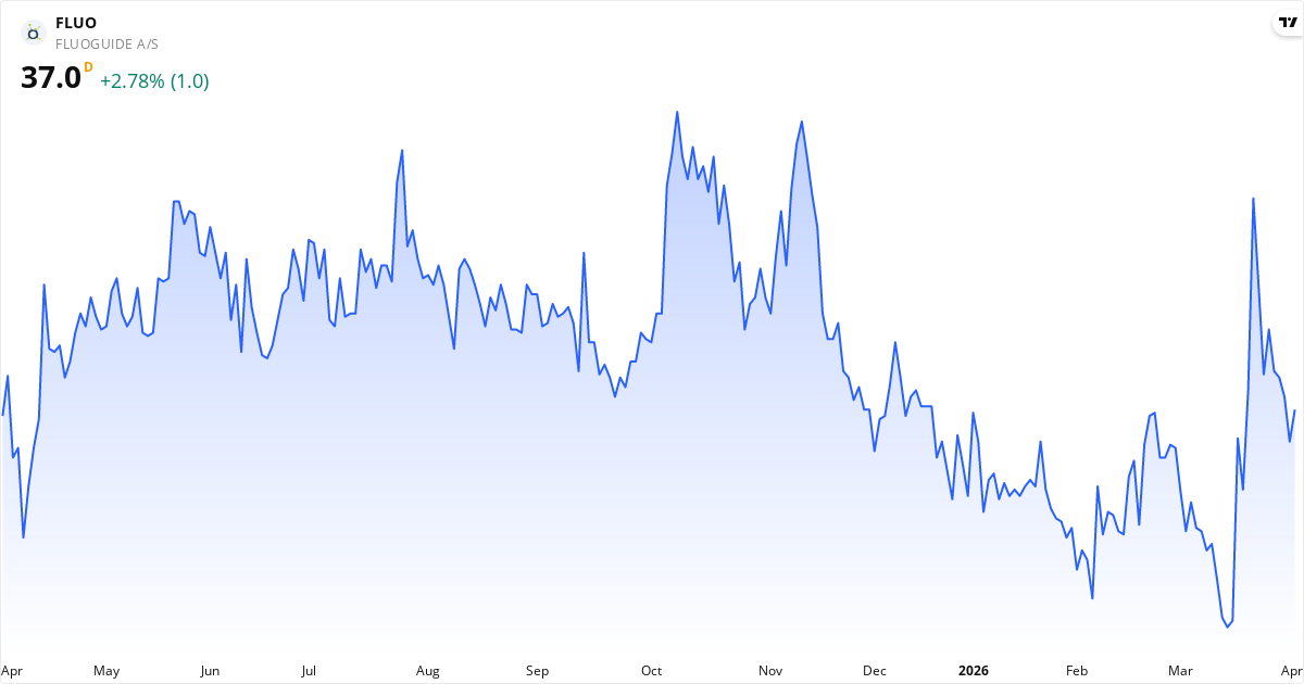 Fluoguide AS er i en kortsiktig opptrend. Kursen på 36.00 Kr. ligger 1.6% over 20-dagers gjennomsnittet (35.44 Kr.). På mellomlang sikt er bildet positivt: kursen ligger 3.8% over 50-dagers gjennomsnittet (34.68 Kr.). Langsiktig ligger aksjen 6.6% under 200-dagers gjennomsnittet (38.55 Kr.), hvilket indikerer en langsiktig nedtrend.