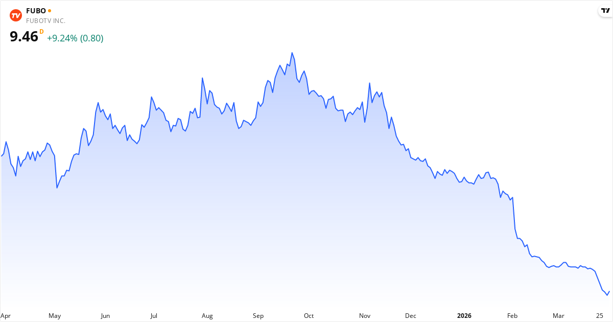 Fremtidsutsiktene for fuboTV basert på aktuelle data: analytikernes gjennomsnittlige kursmål er 29.17 $ (+207.1%); aksjen er i en nedtrend (under SMA50 og SMA200); neste rapport publiseres den 01/05-2026, noe som kan påvirke kursen; P/E-tallet er 2.3 (lavt – mulig verdiaksje). Observer at aksjekurser påvirkes av mange faktorer, inkludert rapporter, makroøkonomi og markedssentiment. Historisk avkastning er ingen garanti for fremtidig avkastning.