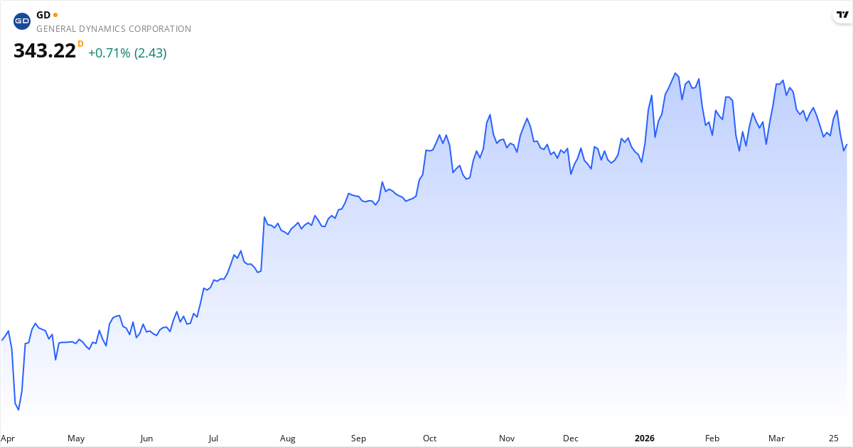 General Dynamics aksjekurs – Kursutvikling 2026. Oppdatert 01. Apr 2026.