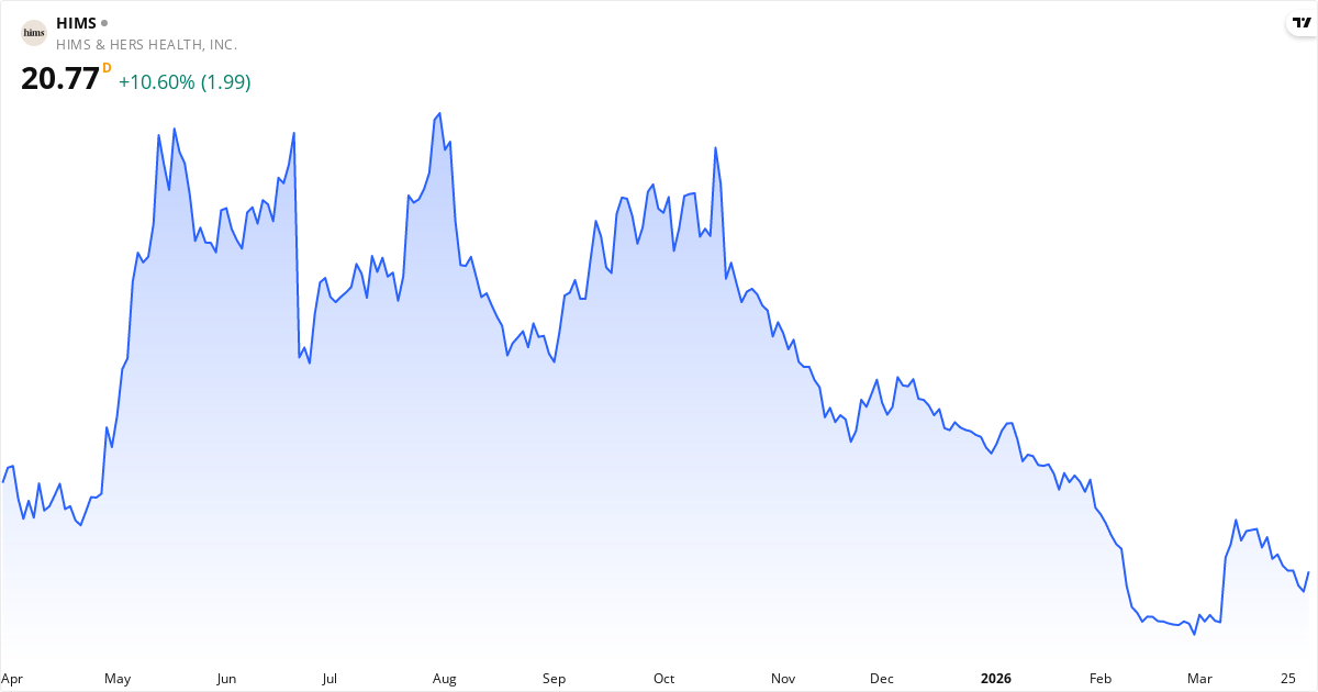 Hims & Hers Health, Inc. driver en digital helsetjenesteplattform hvor folk kan snakke med leger på nettet. De tjener hovedsakelig penger på abonnementer der kunder får reseptbelagt medisin sendt direkte. Selskapet tilbyr et bredt utvalg av helse- og velværeprodukter via sine nettsider og sin app.