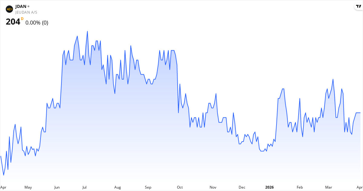 Det finnes for tiden ikke et aktivt kursmål fra analytikere for Jeudan. Observer at kursmål er estimater og ikke garantier. Faktiske kursbevegelser avhenger av rapporter, markedsforhold og uventede hendelser.