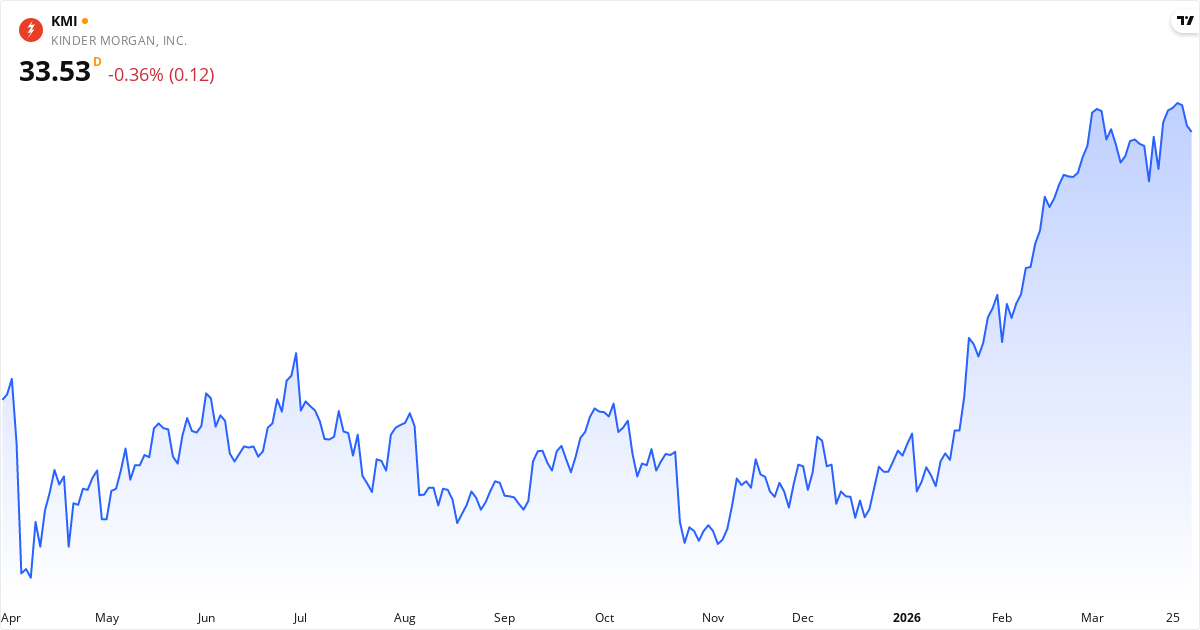 Kinder Morgan (KMI.US) kursmål 2026: 6% oppside + 3.4% utbytte