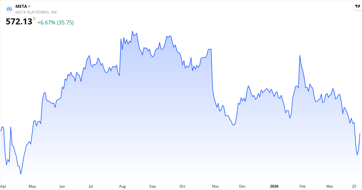 Meta Platforms aksjekurs – Kursutvikling 2026. Oppdatert 01. Apr 2026.