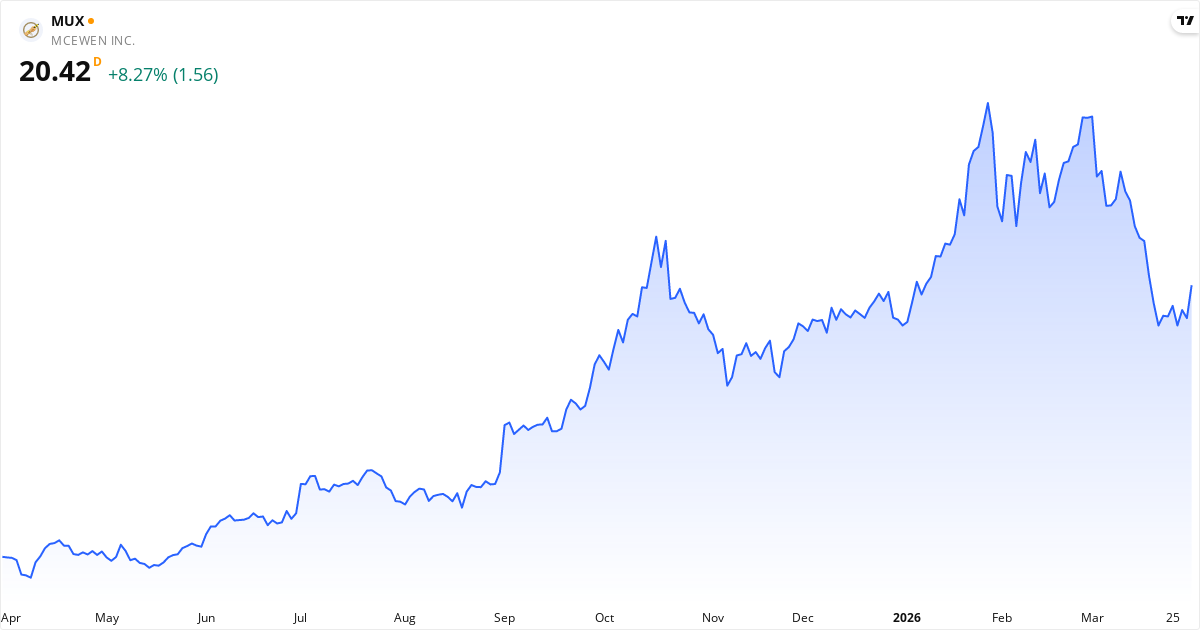 McEwen Mining Inc er i en kortsiktig nedtrend. Kursen på 20.42 $ ligger 6.2% under 20-dagers gjennomsnittet (21.78 $). På mellomlang sikt er bildet negativt: kursen ligger 16.1% under 50-dagers gjennomsnittet (24.35 $). Langsiktig ligger aksjen 16.4% over 200-dagers gjennomsnittet (17.55 $), hvilket bekrefter en langsiktig opptrend.