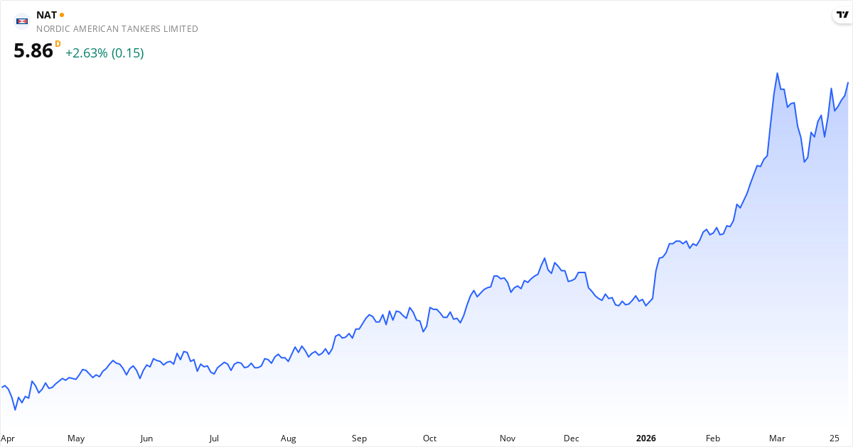 Nordic American Tankers, eller NAT.us, driver virksomhet med å transportere råolje globalt. De tjener penger ved å chartre og leie ut sin flåte av tankskip til kunder over hele verden. Kjernen i NAT.us sin virksomhet er deres 20 Suezmax tankskip, som er spesialbygd for å seile gjennom Suezkanalen. Disse skipene utgjør hele deres kapasitet. Selskapet ble grunnlagt i 1995 og har sitt hovedkontor i Hamilton, Bermuda. De fokuserer utelukkende på å levere denne spesifikke transporttjenesten internasjonalt. I praksis betyr det at Nordic American Tankers kjøper skip og deretter leier dem ut, noe som sikrer en stabil inntjening fra den globale råolje-transporten. De har altså en ganske enkel forretningsmodell basert på sin spesialiserte flåte. Les om selskapetNøkkeltall for Nordic American Tankers