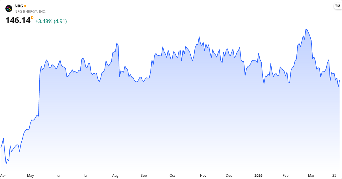 NRG Energy aksjekurs – Kursutvikling 2026. Oppdatert 01. Apr 2026.