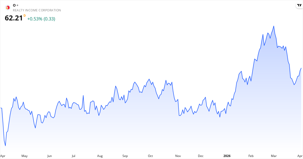 Realty Income aksjekurs – Kursutvikling 2026. Oppdatert 04. Apr 2026.