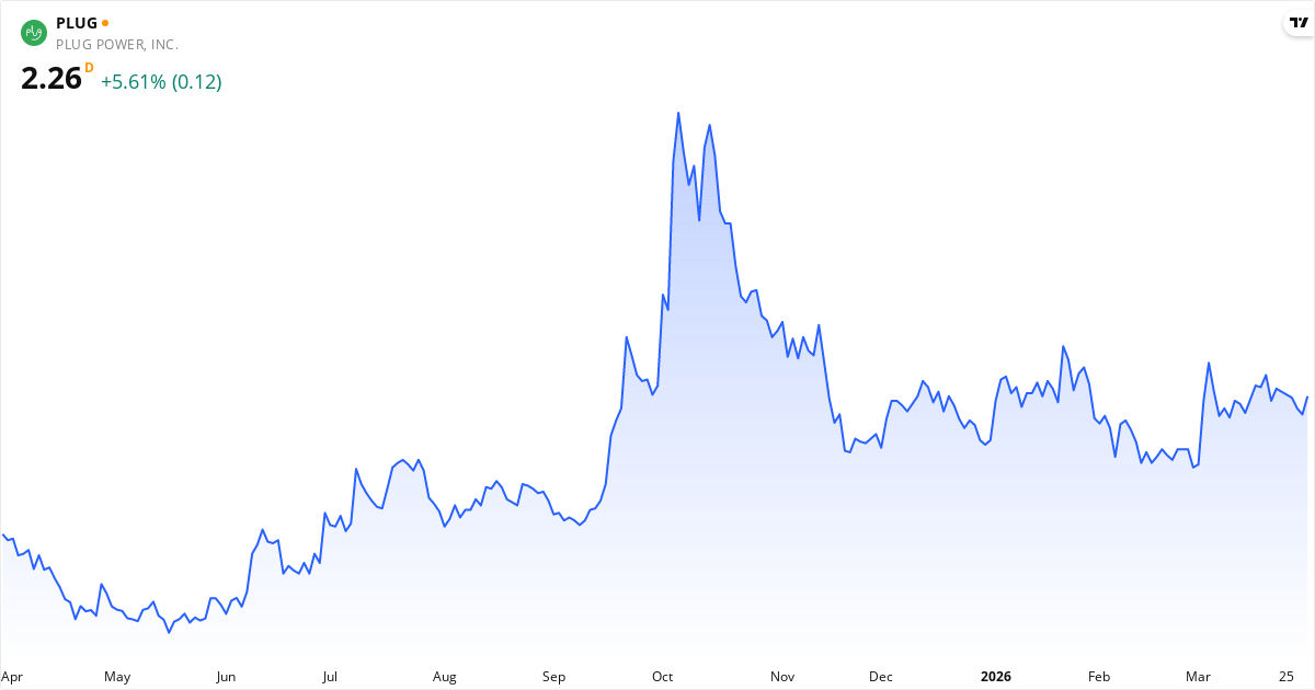 Plug Power aksjekurs – Kursutvikling 2026. Oppdatert 01. Apr 2026.