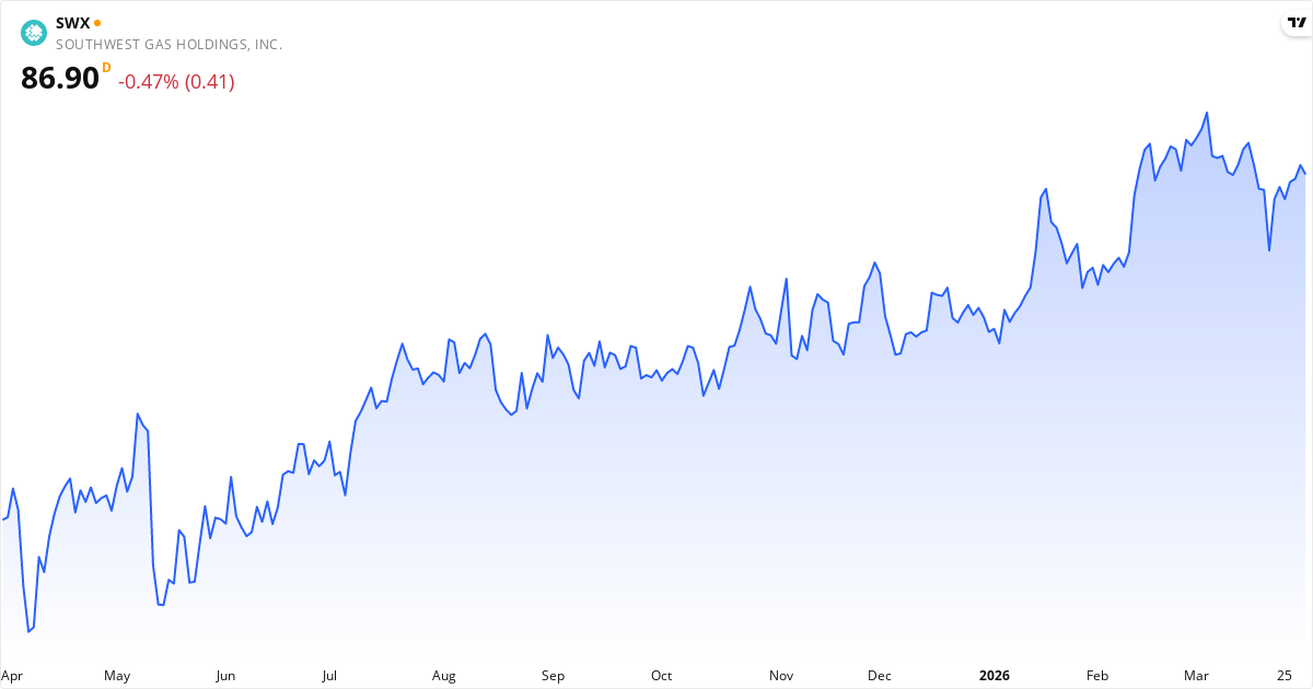 Southwest Gas aksjekurs – Kursutvikling 2026. Oppdatert 01. Apr 2026.