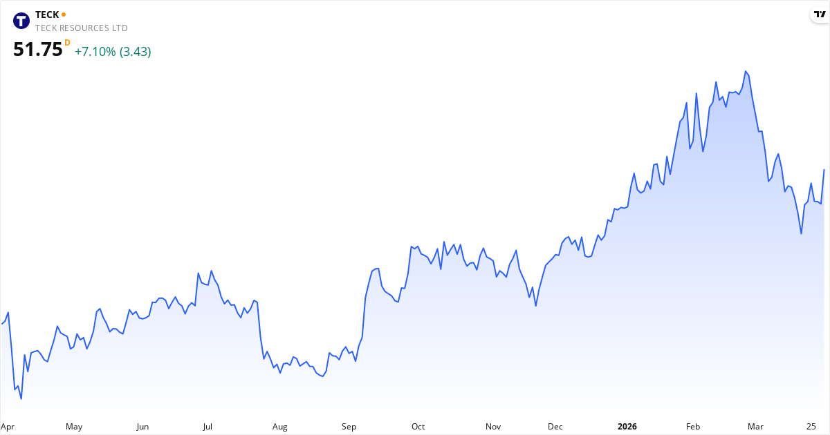Teck Resources kursmål 2026: Analytikere ser 14% nedside