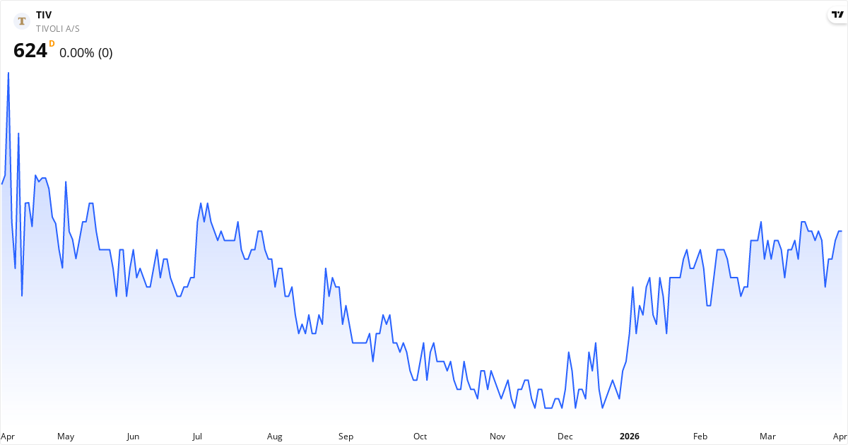 Nyheten: Tivoli har offentliggjort årsrapport for 2025 med mindre fremgang på de fleste nøgletal. Omsætningen steg til 1.344,7 mio. kr. fra 1.320,9 mio. kr. og EBITDA steg til 281,2 mio. kr. fra 271,2 mio. kr. Resultat før skat blev 156,3 mio. kr. mod 155,4 mio. kr. året før. Antal besøgende steg til 4.304.000 mod 4.250.000. Bestyrelsen foreslår udbytte på 5,5 kr. pr. aktie, og udbyttepolitikken justeres til et mål om 25-50% af årets resultat efter skat. For 2026 forventes aktivitet på niveau med 2025, omsætning omkring 1.400 mio. kr. og resultat før skat omkring 145 mio. kr., dvs. lidt lavere end rekordåret 2025. Selskabet peger samtidig på større investeringer og åbning af nyt tematisk område i sommeren 2026. (dato: 2026-03-23 10:05)