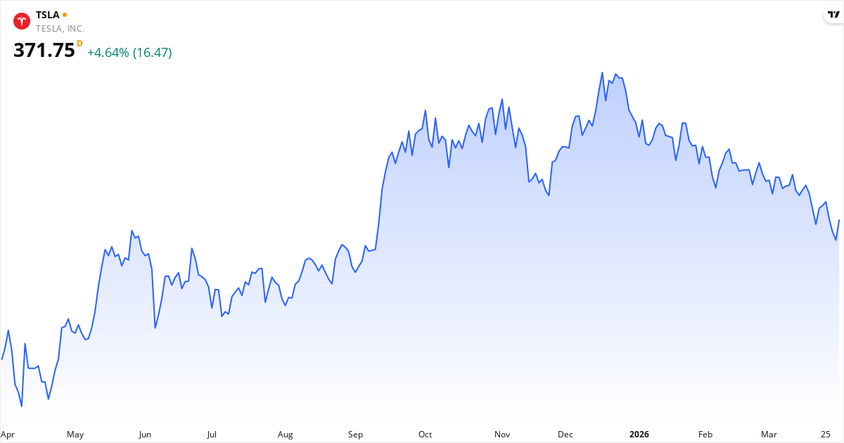 Tesla aksjekurs – Kursutvikling 2026. Oppdatert 01. Apr 2026.