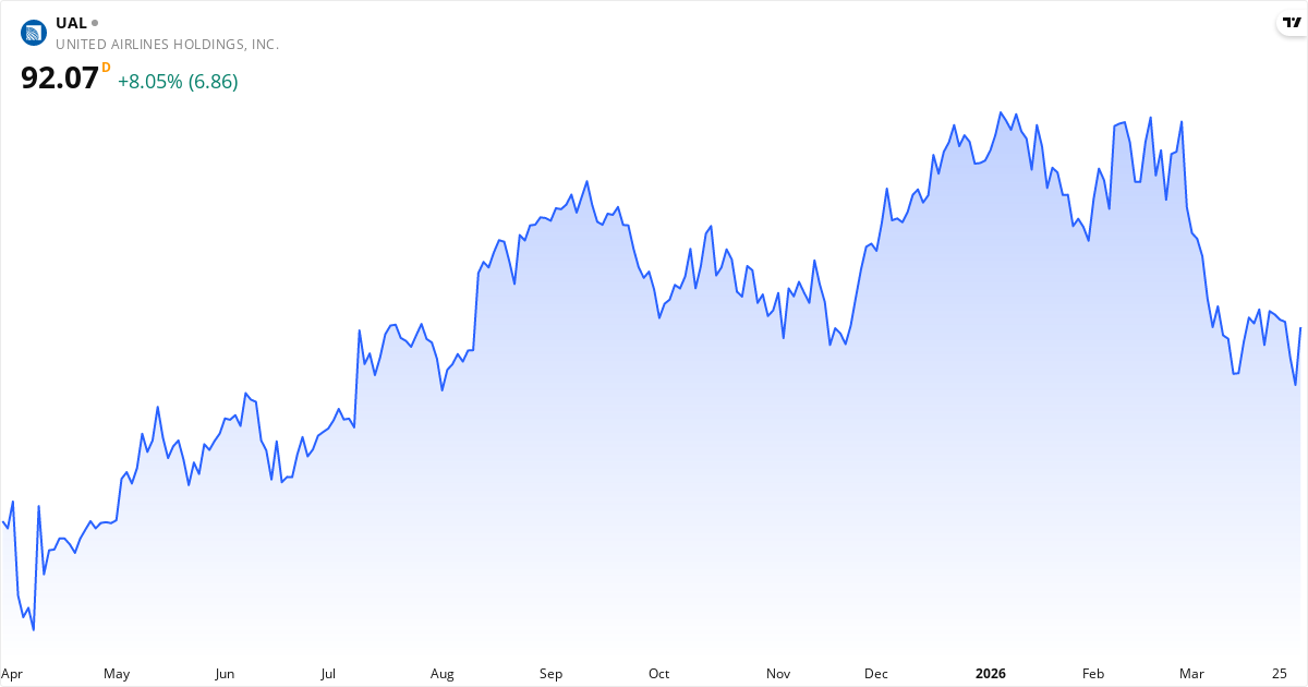 United Airlines aksjekurs – Kursutvikling 2026. Oppdatert 01. Apr 2026.