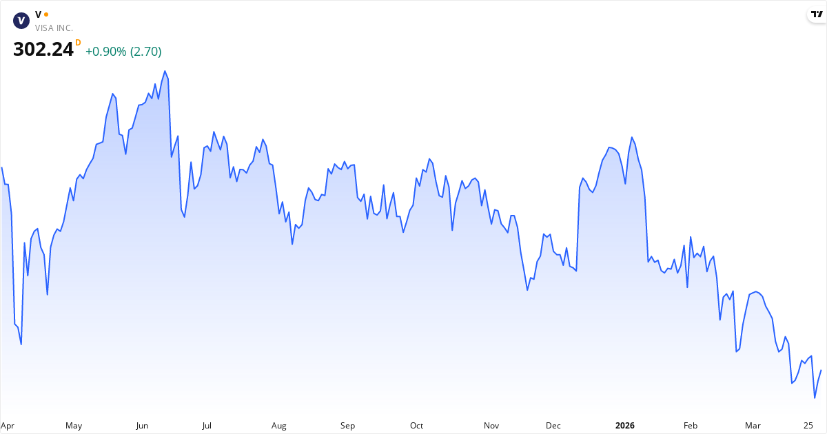 Visa Inc er i en kortsiktig nedtrend. Kursen på 302.24 $ ligger 1.6% under 20-dagers gjennomsnittet (307.27 $). På mellomlang sikt er bildet negativt: kursen ligger 4.6% under 50-dagers gjennomsnittet (316.65 $). Langsiktig ligger aksjen 10.0% under 200-dagers gjennomsnittet (335.96 $), hvilket indikerer en langsiktig nedtrend.