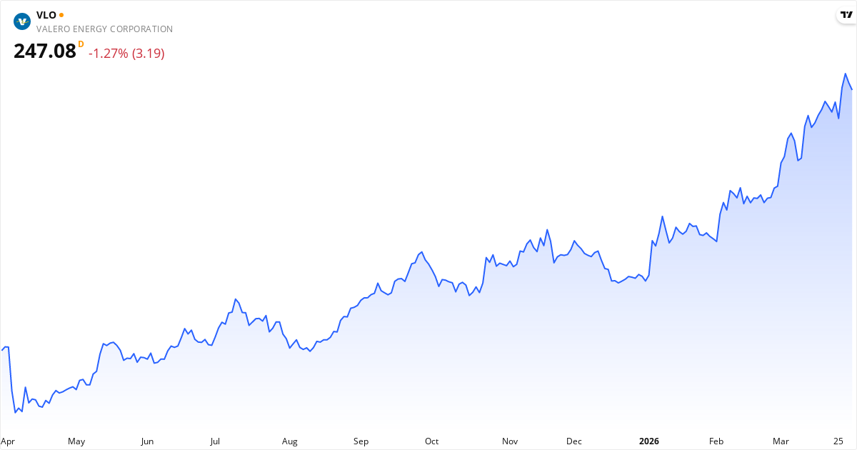 Valero Energy aksjekurs – Kursutvikling 2026. Oppdatert 01. Apr 2026.
