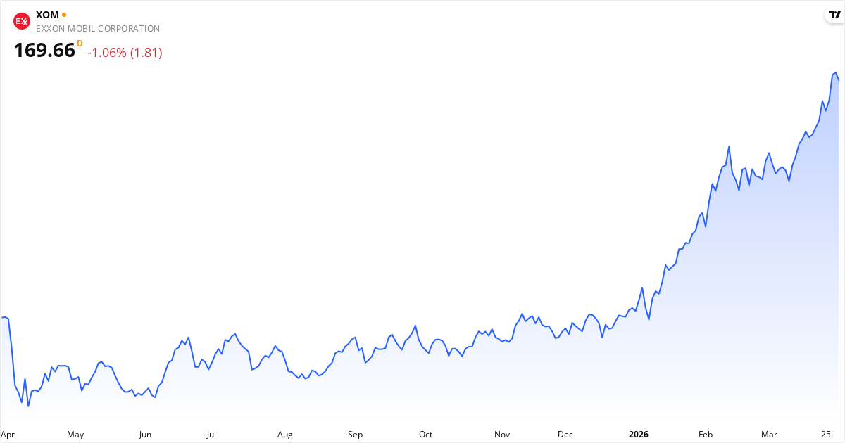 Exxon Mobil aksjekurs – Kursutvikling 2026. Oppdatert 01. Apr 2026.