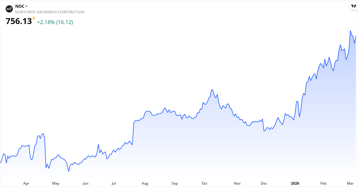 Northrop Grumman aktiekurs – Kursutveckling 2026. Uppdaterad 08. Mar 2026.
